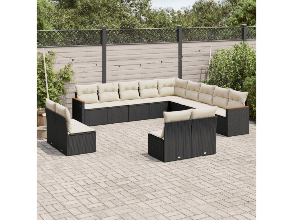 13dílný zahradní sedací souprava s poduškami černý polyratan 3226483