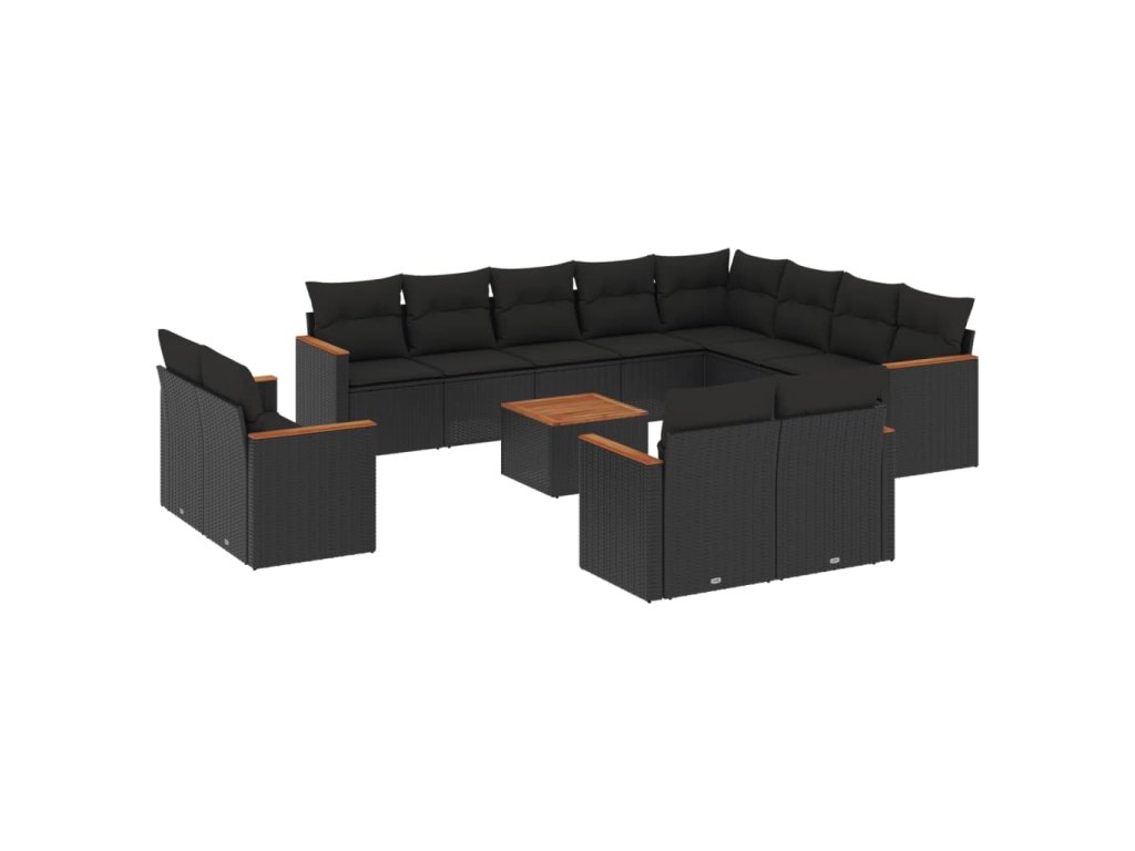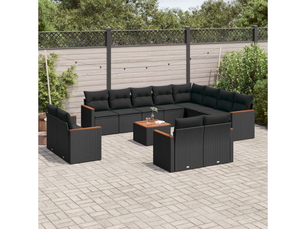 13dílný zahradní sedací souprava s poduškami černý polyratan 3226517