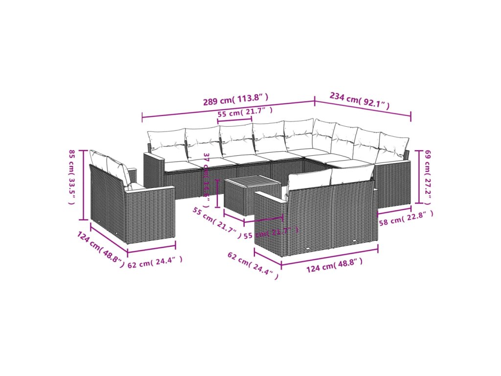 13dílný zahradní sedací souprava s poduškami černý polyratan 3226518