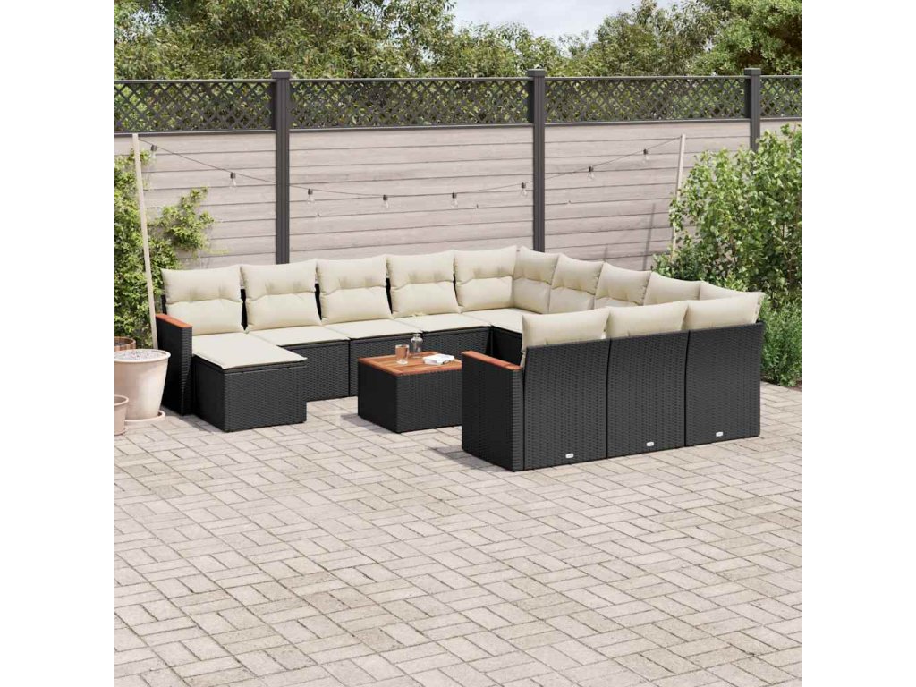 13dílný zahradní sedací souprava s poduškami černý polyratan 3226588