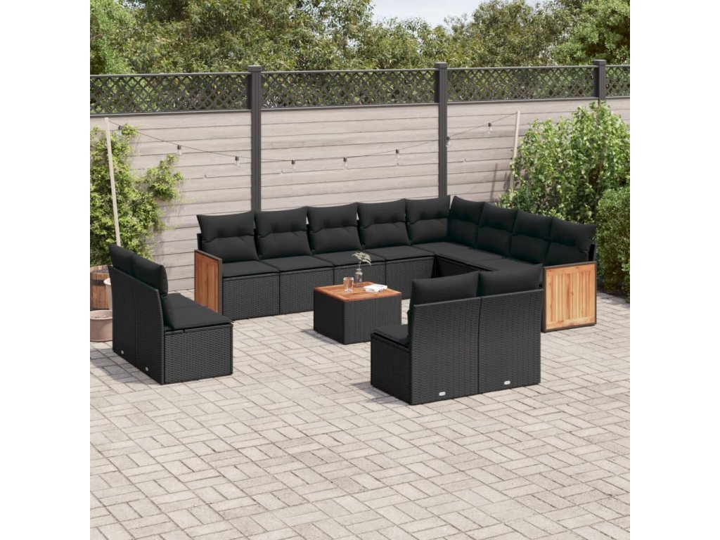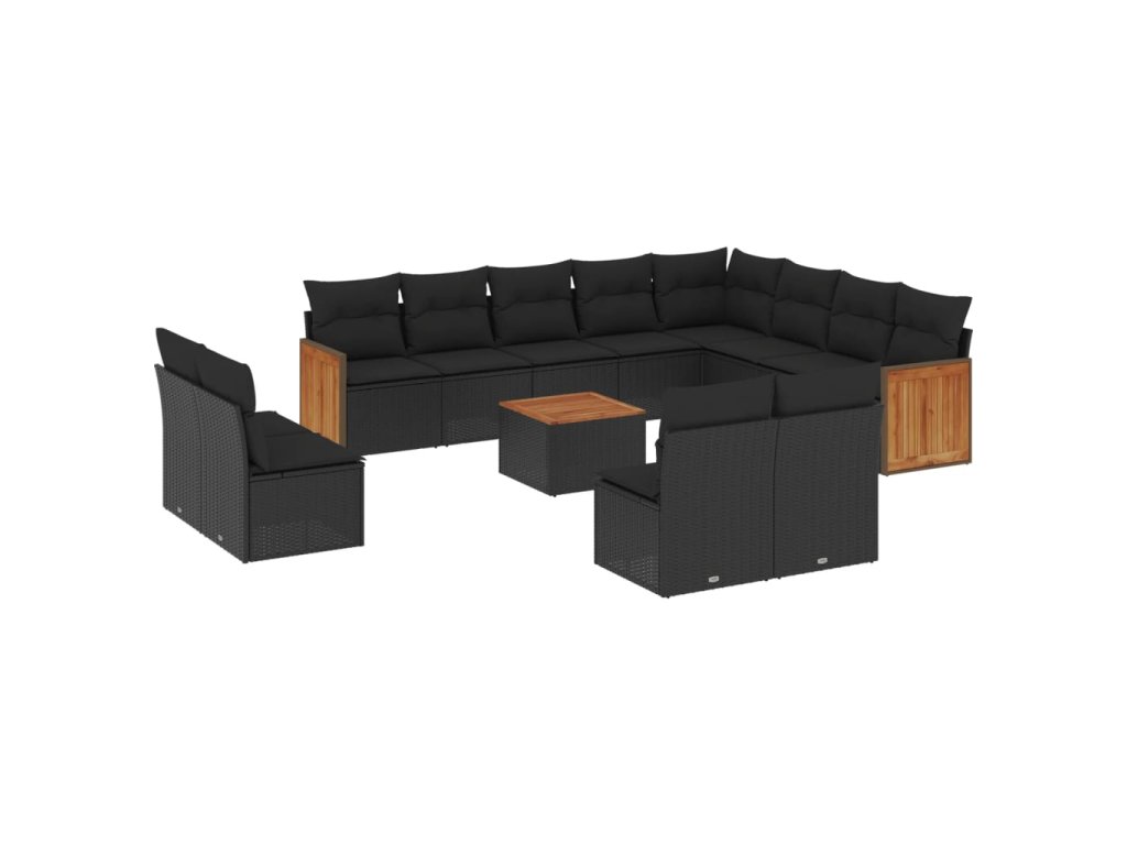 13dílný zahradní sedací souprava s poduškami černý polyratan 3228155