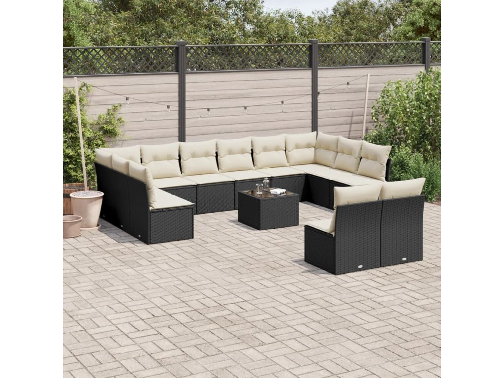 13dílný zahradní sedací souprava s poduškami černý polyratan 3250215