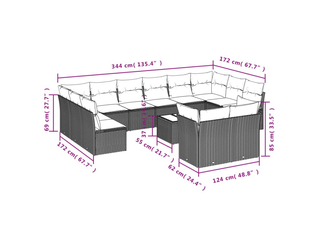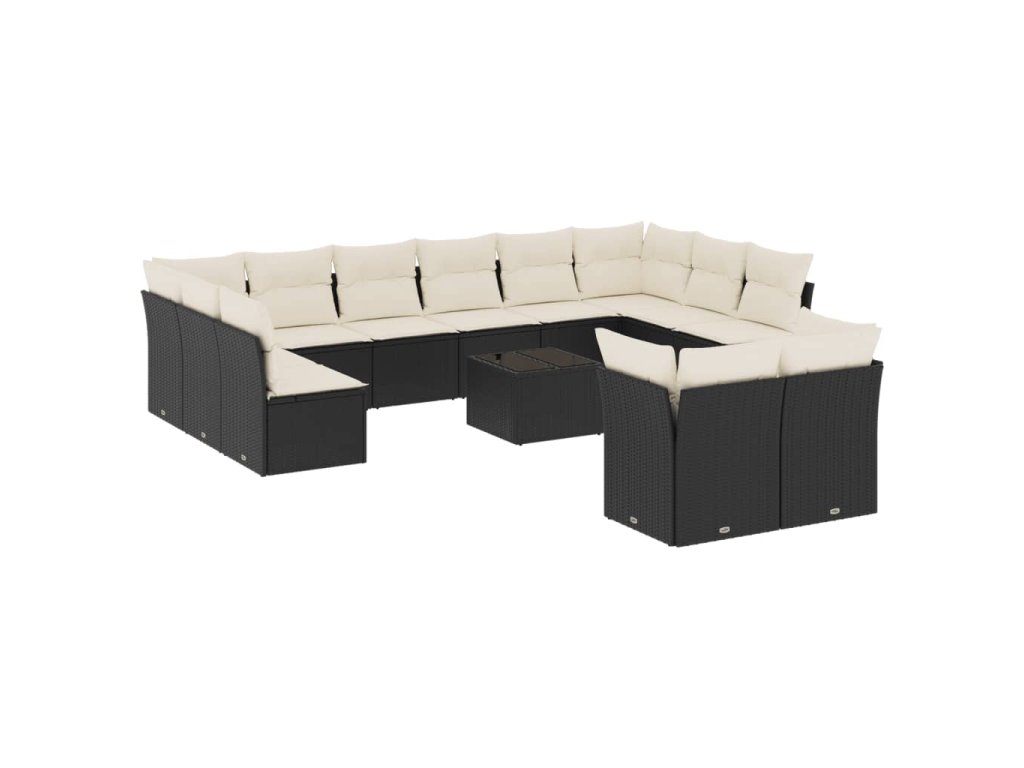 13dílný zahradní sedací souprava s poduškami černý polyratan 3250275