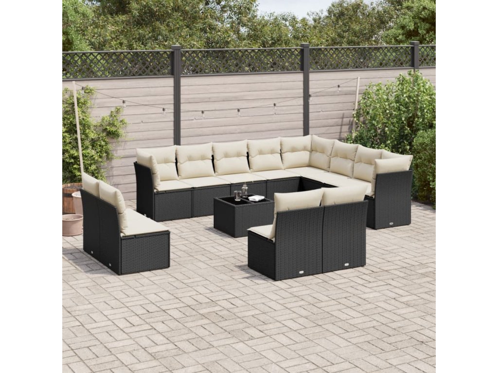13dílný zahradní sedací souprava s poduškami černý polyratan 3250315