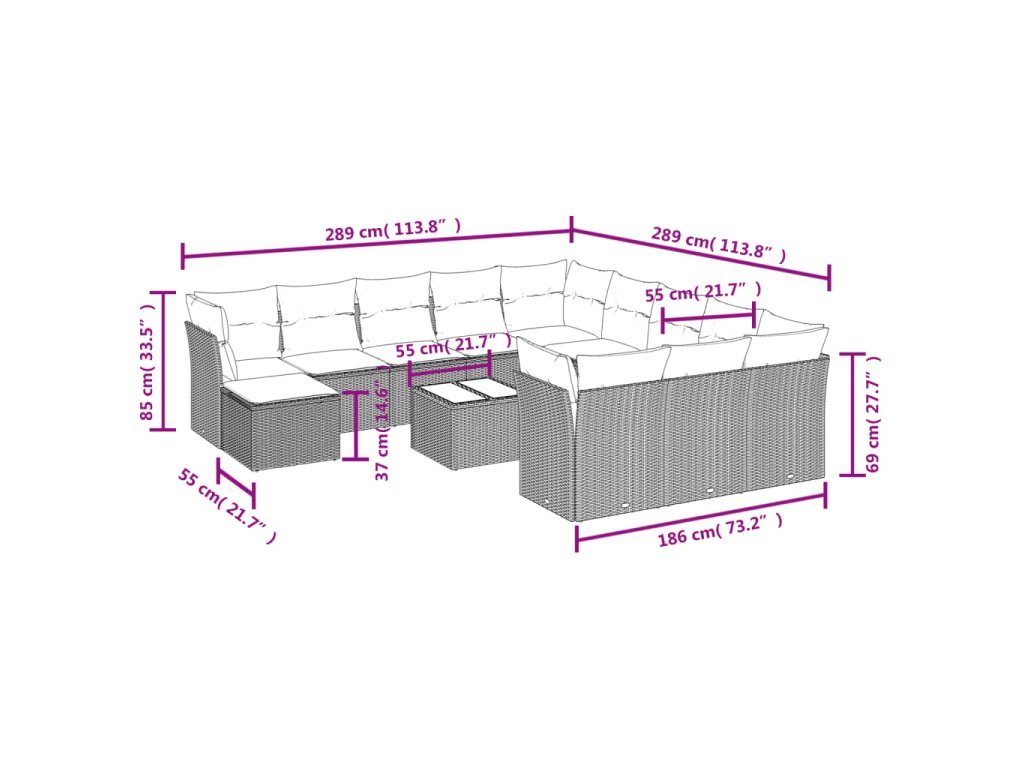 13dílný zahradní sedací souprava s poduškami černý polyratan 3250474