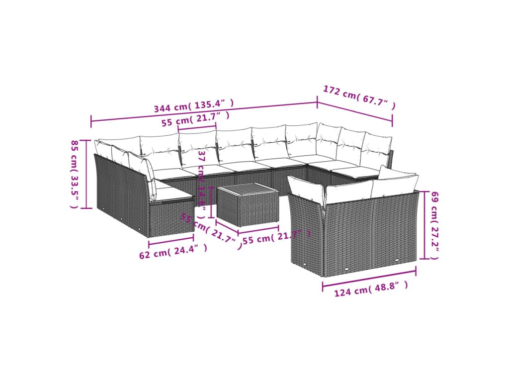 13dílný zahradní sedací souprava s poduškami černý polyratan 3256245