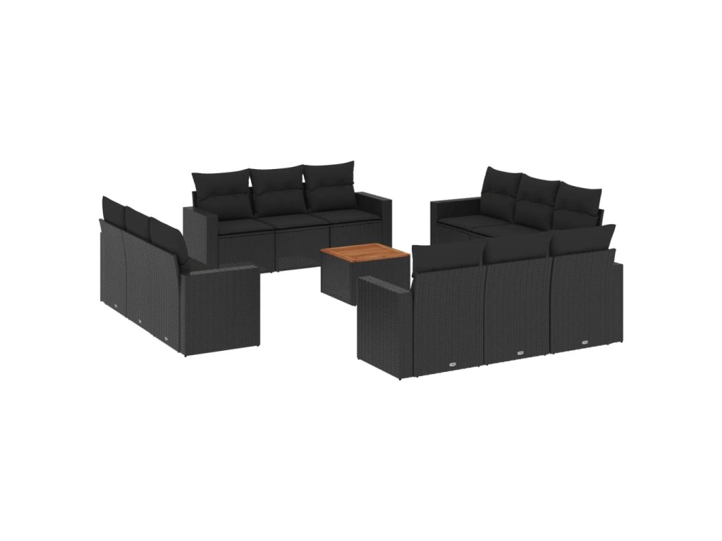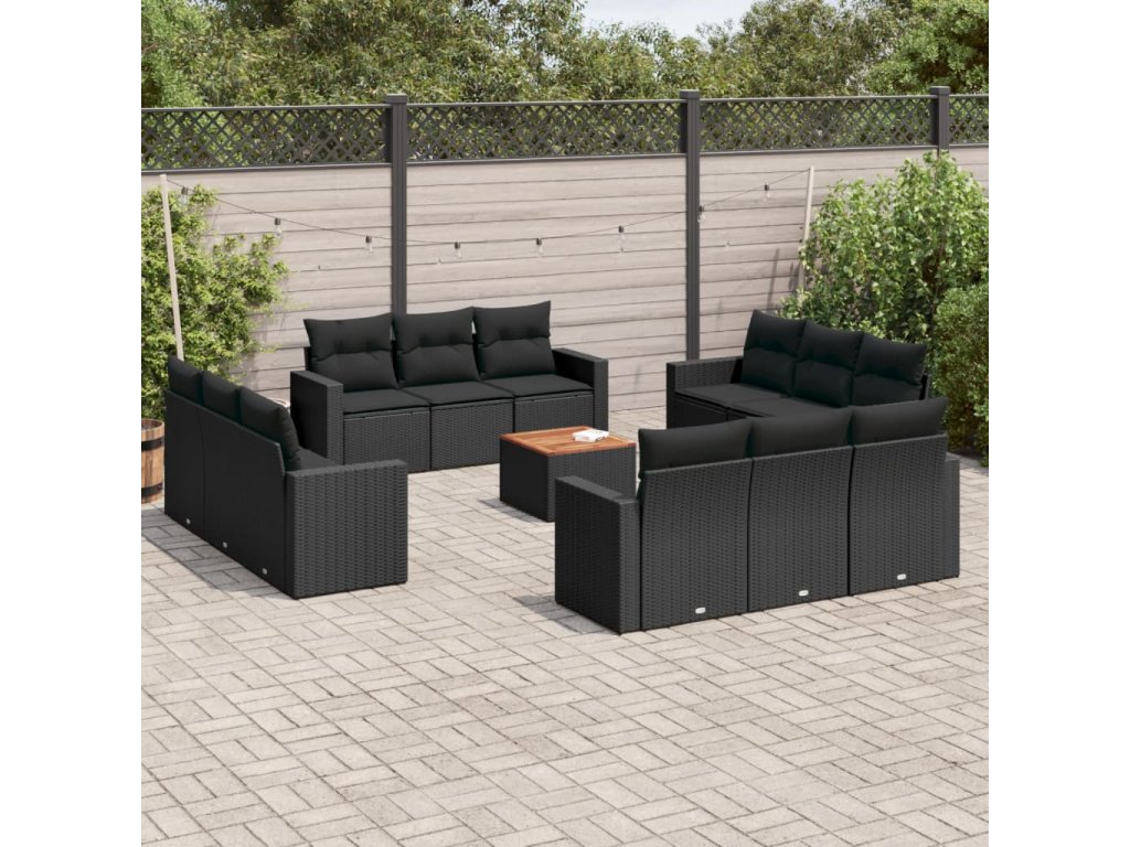 13dílný zahradní sedací souprava s poduškami černý polyratan 3256384