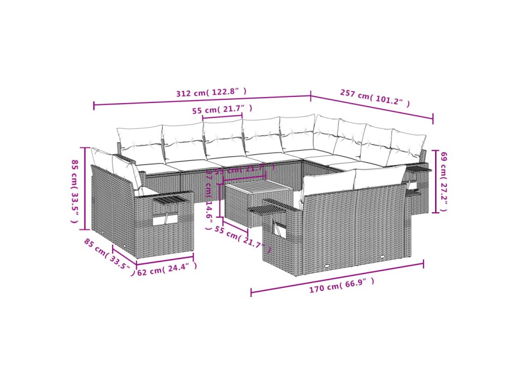 13dílný zahradní sedací souprava s poduškami černý polyratan 3257161