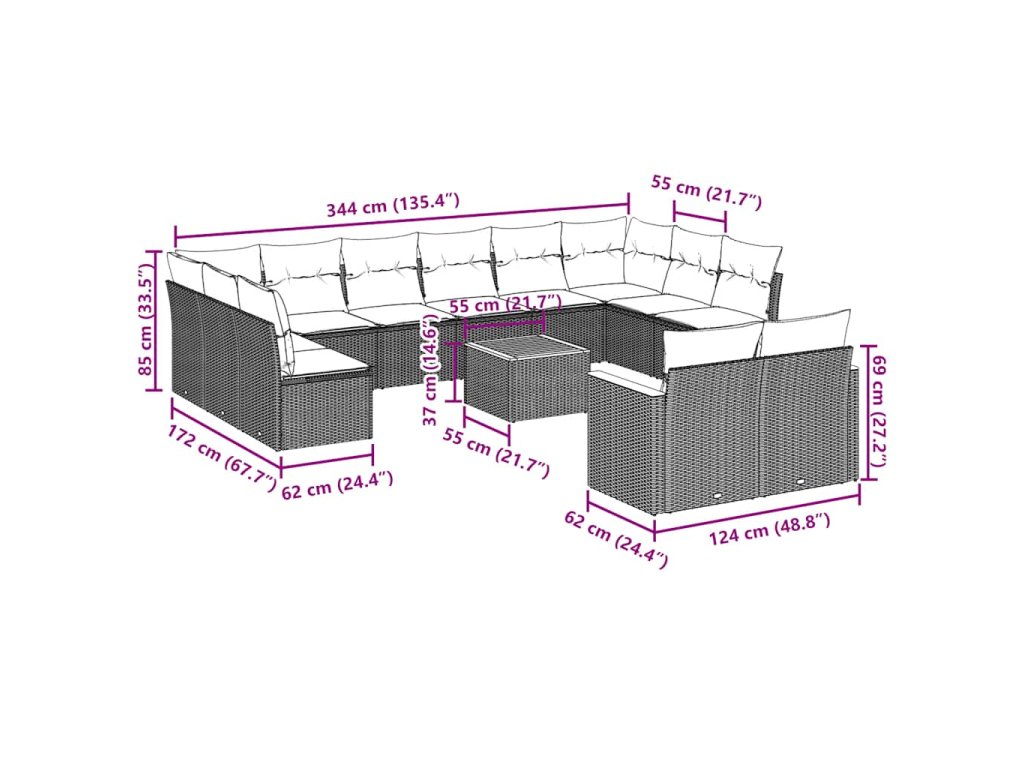 13dílný zahradní sedací souprava s poduškami černý polyratan 3258850