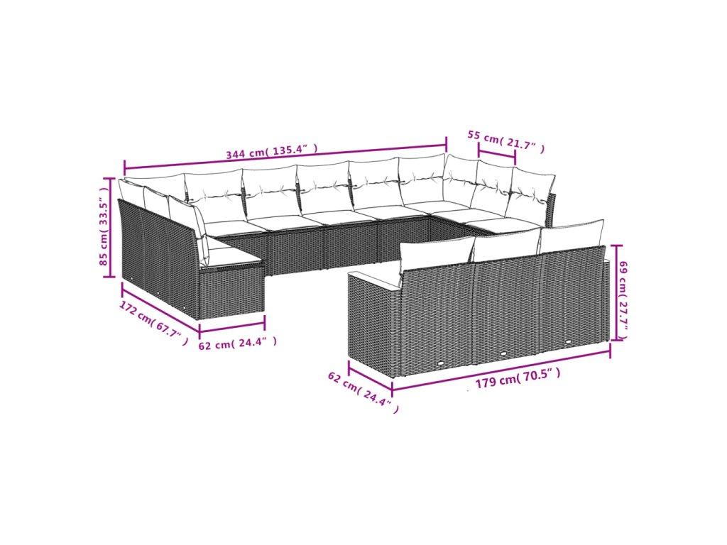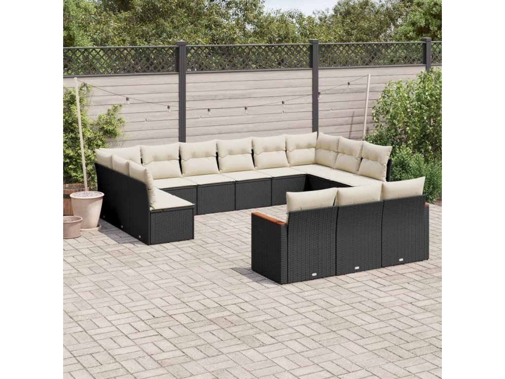 13dílný zahradní sedací souprava s poduškami černý polyratan 3258857