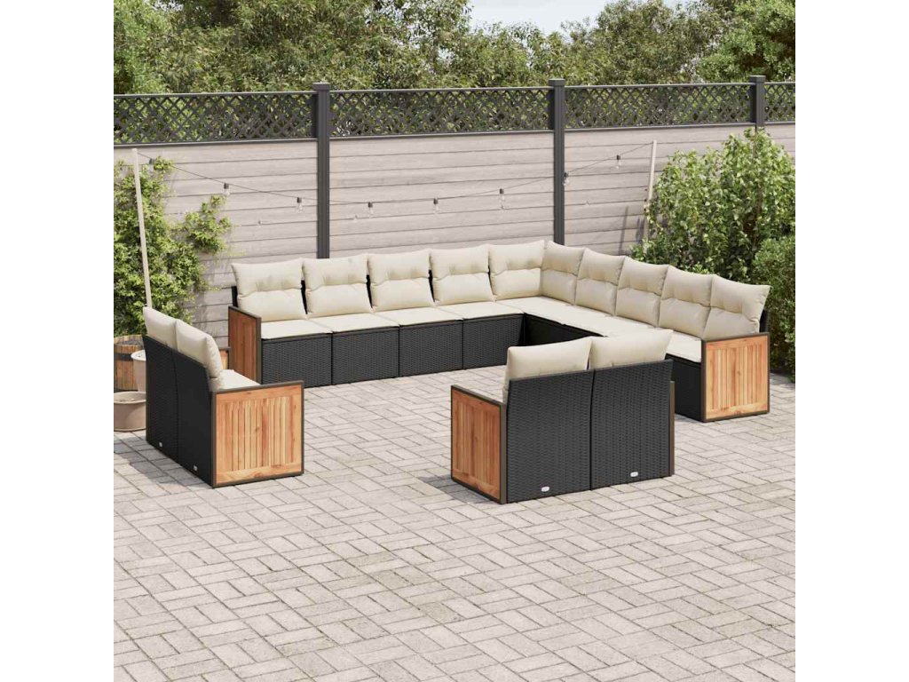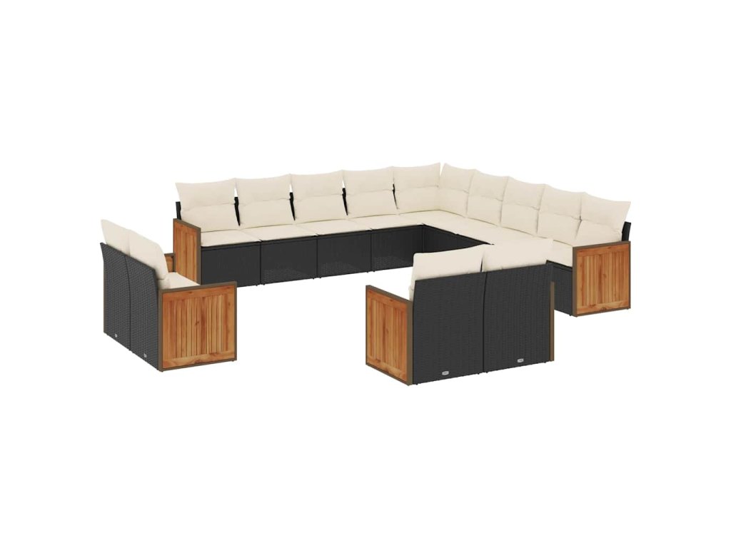 13dílný zahradní sedací souprava s poduškami černý polyratan 3260607