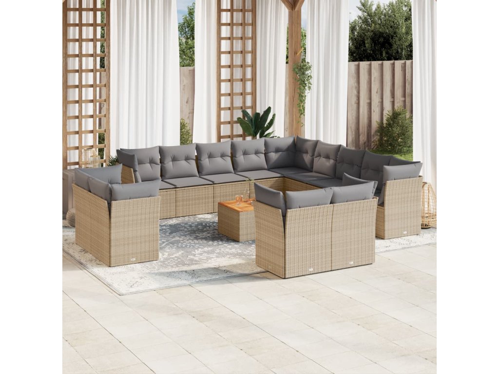 14dílná zahradní sedací souprava s poduškami béžová polyratan 3223959