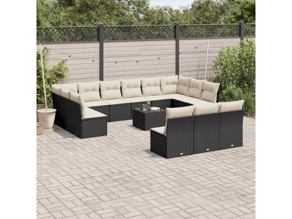 14dílná zahradní sedací souprava s poduškami černá polyratan 3218396