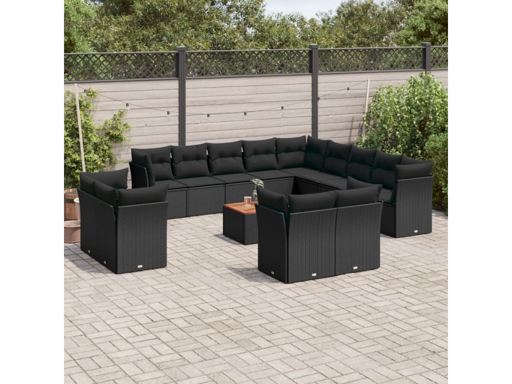 14dílná zahradní sedací souprava s poduškami černá polyratan 3223955