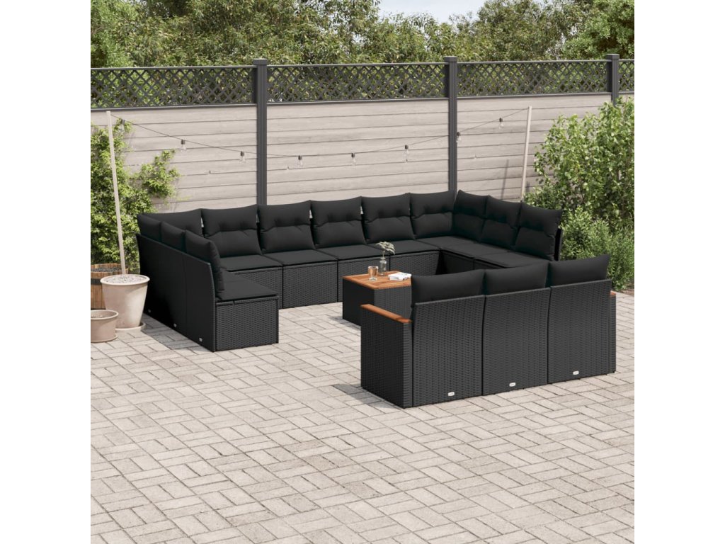 14dílná zahradní sedací souprava s poduškami černá polyratan 3226461