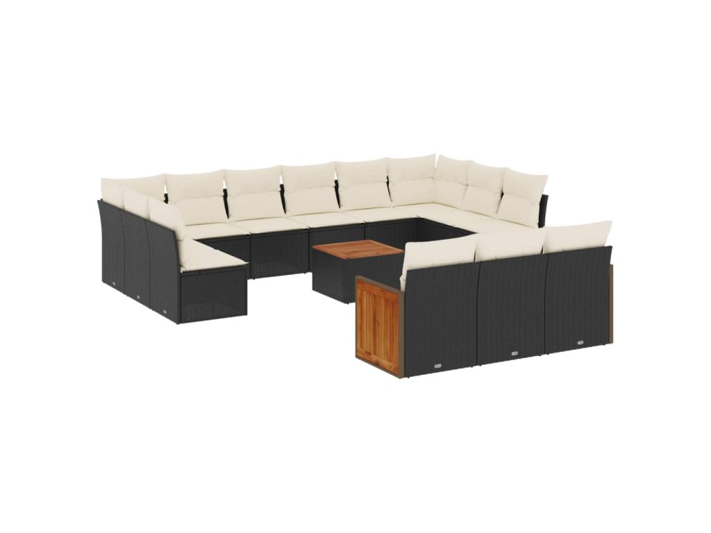 14dílná zahradní sedací souprava s poduškami černá polyratan 3228142