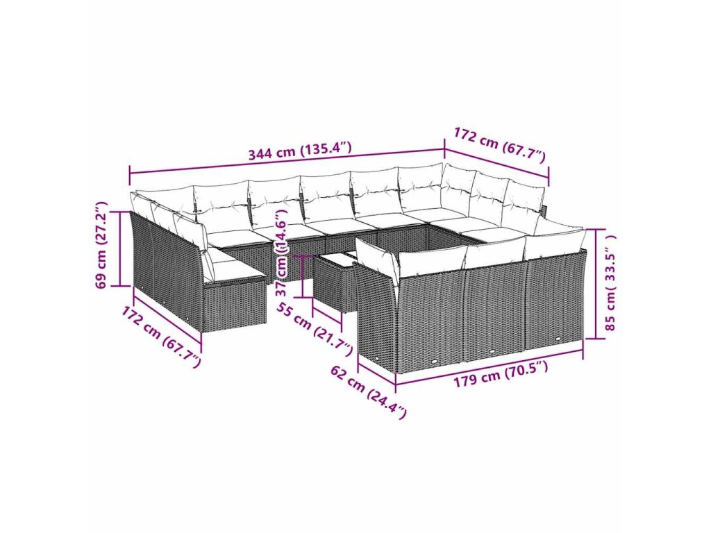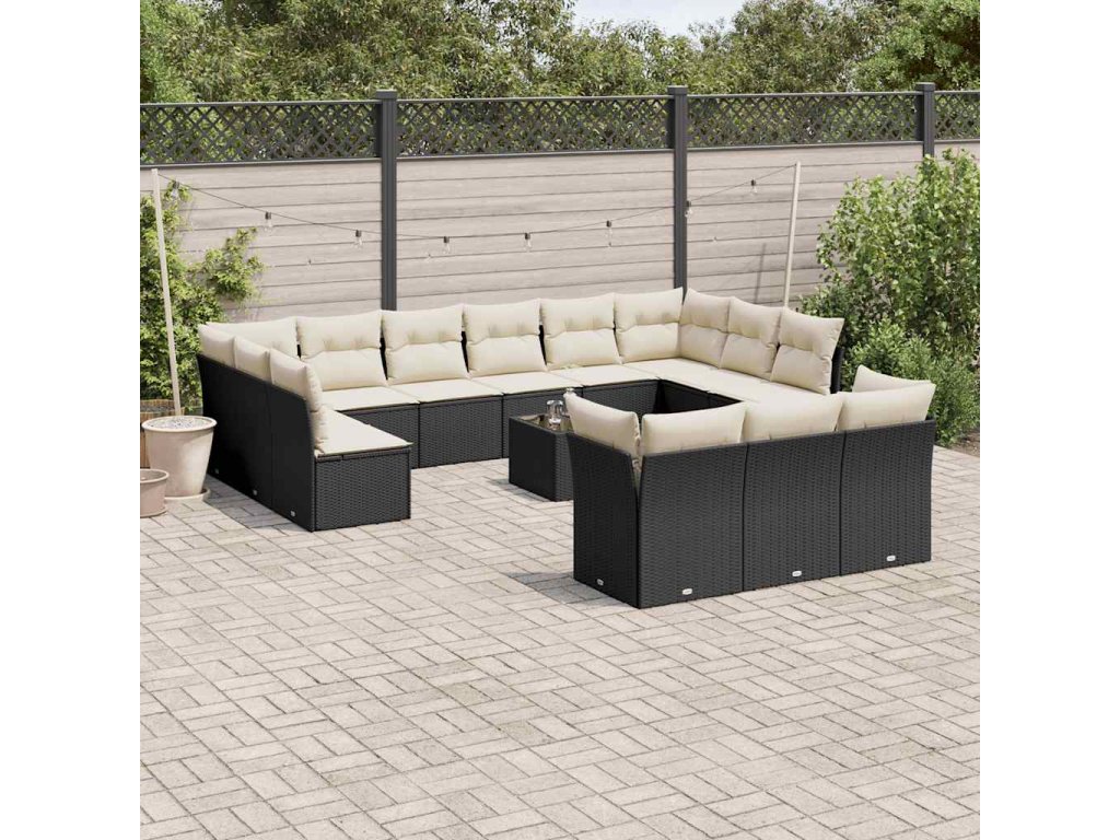 14dílná zahradní sedací souprava s poduškami černá polyratan 3250295