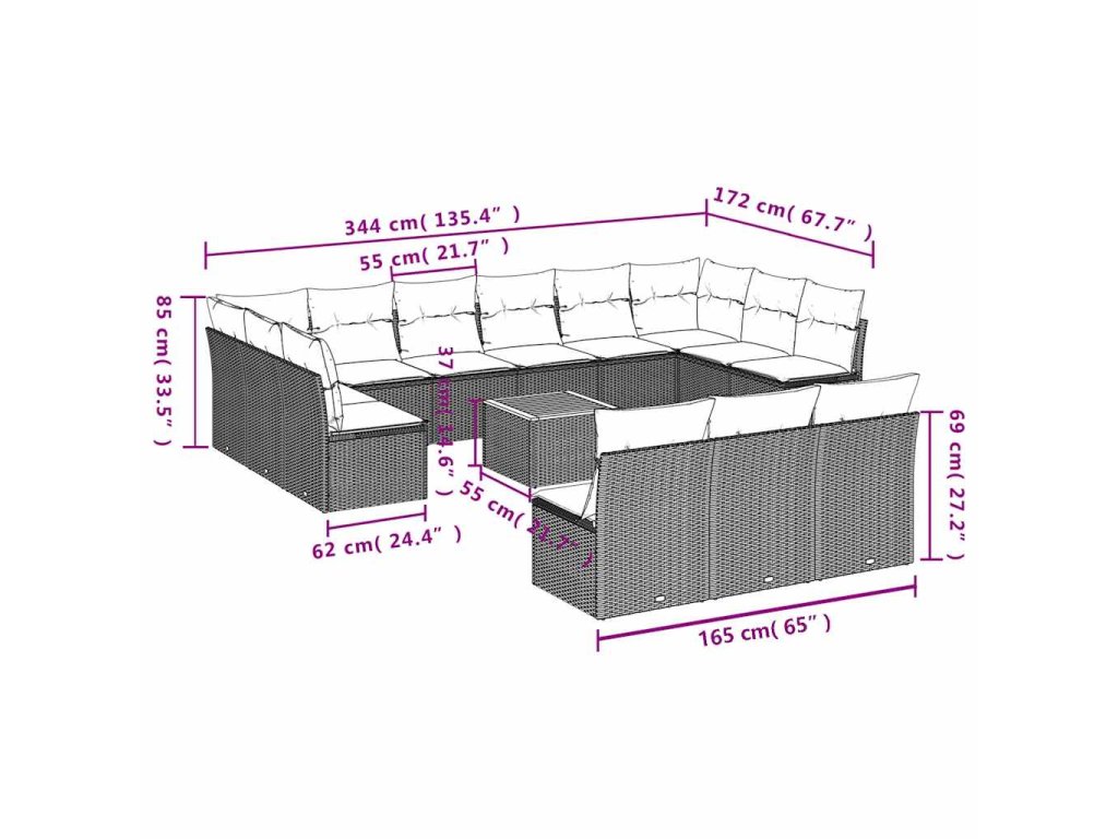 14dílná zahradní sedací souprava s poduškami černá polyratan 3256231