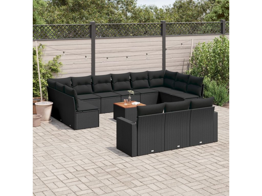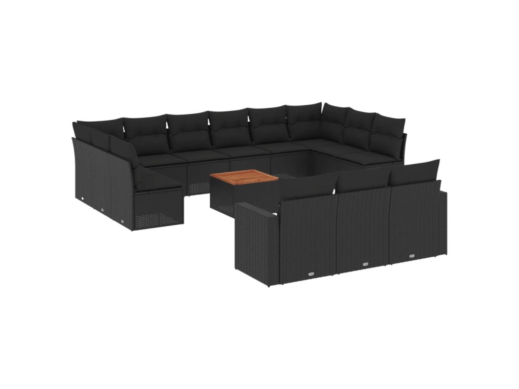 14dílná zahradní sedací souprava s poduškami černá polyratan 3256692