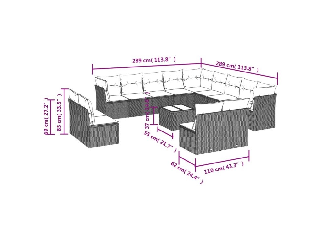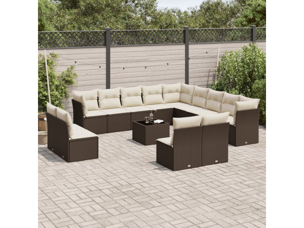 14dílná zahradní sedací souprava s poduškami hnědá polyratan 3250342