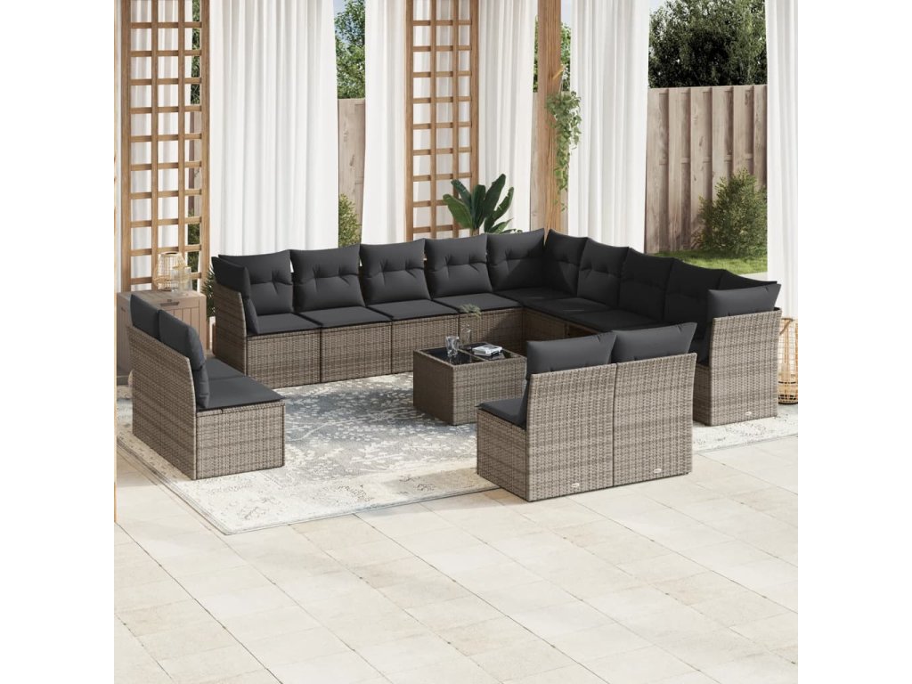 14dílná zahradní sedací souprava s poduškami šedá polyratan 3218500