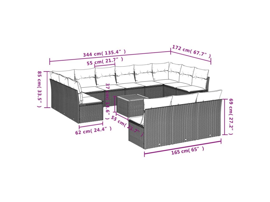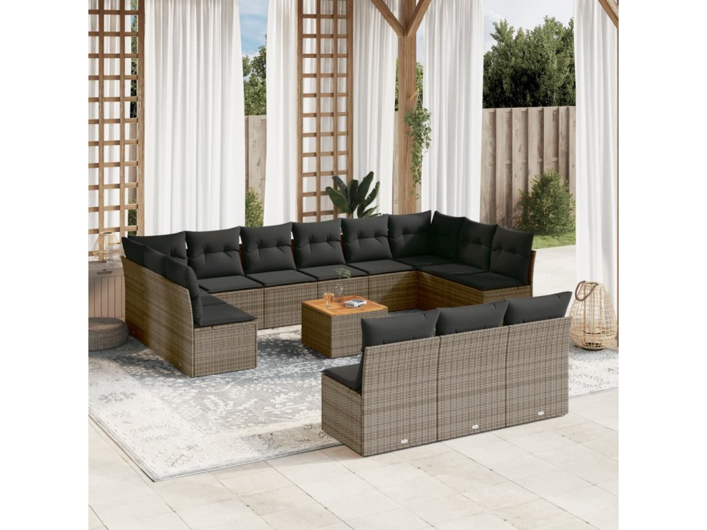 14dílná zahradní sedací souprava s poduškami šedá polyratan 3223904