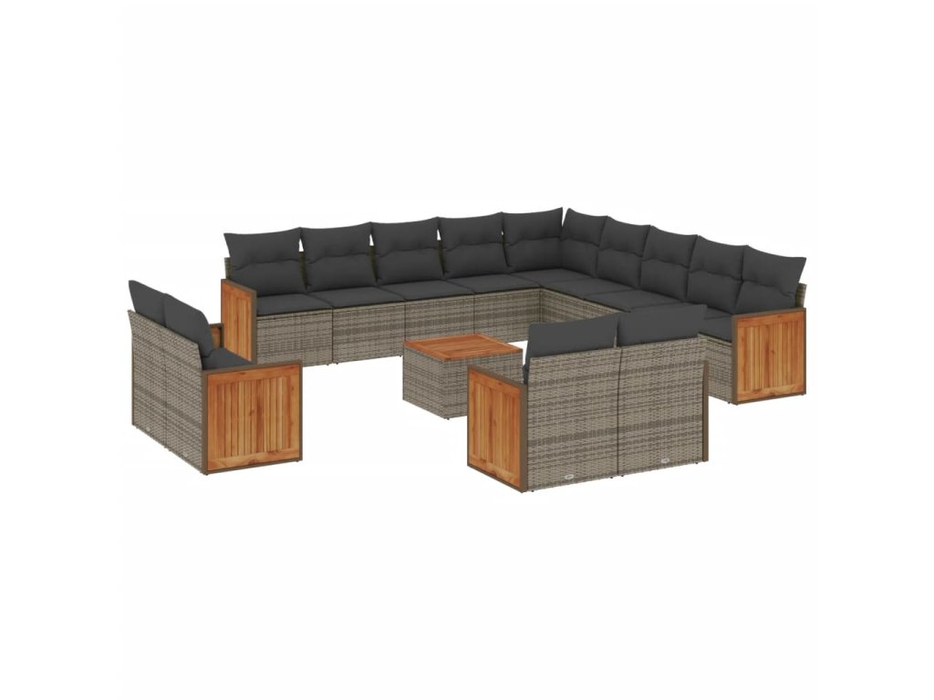 14dílná zahradní sedací souprava s poduškami šedá polyratan 3228216