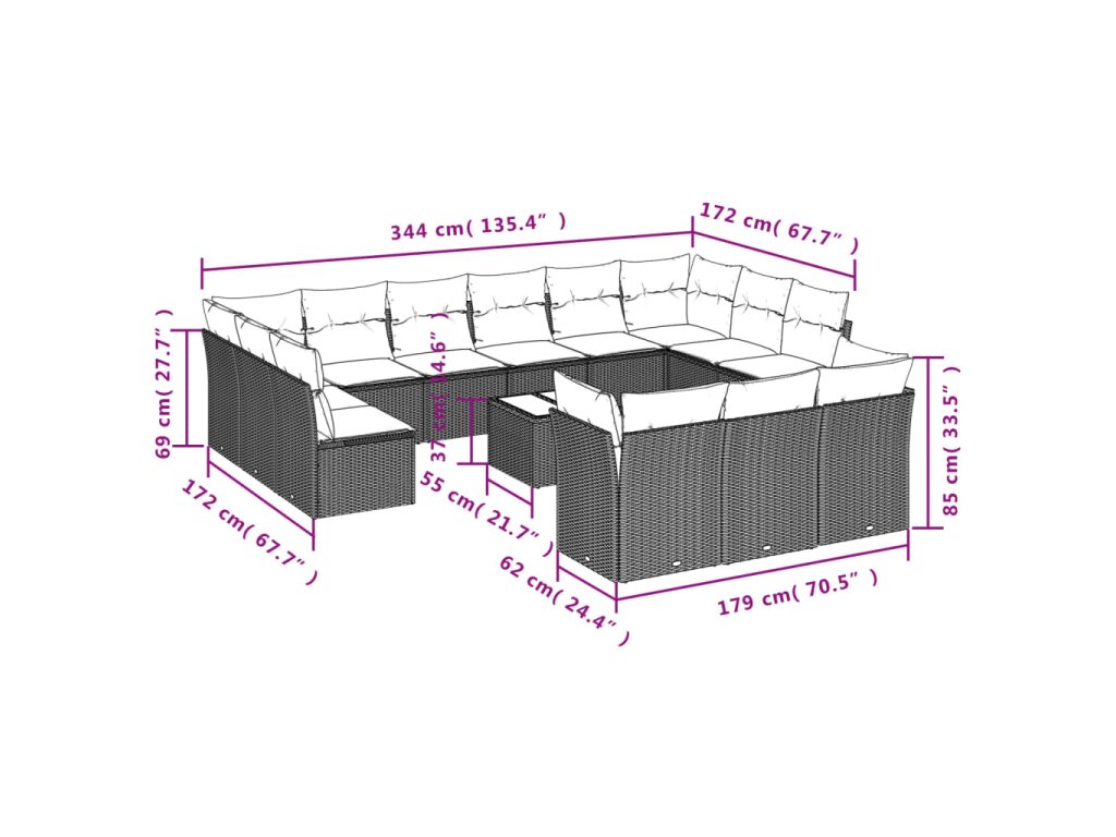 14dílná zahradní sedací souprava s poduškami šedá polyratan 3250299
