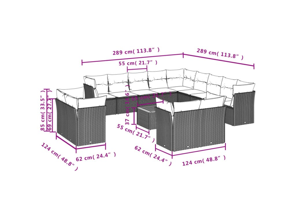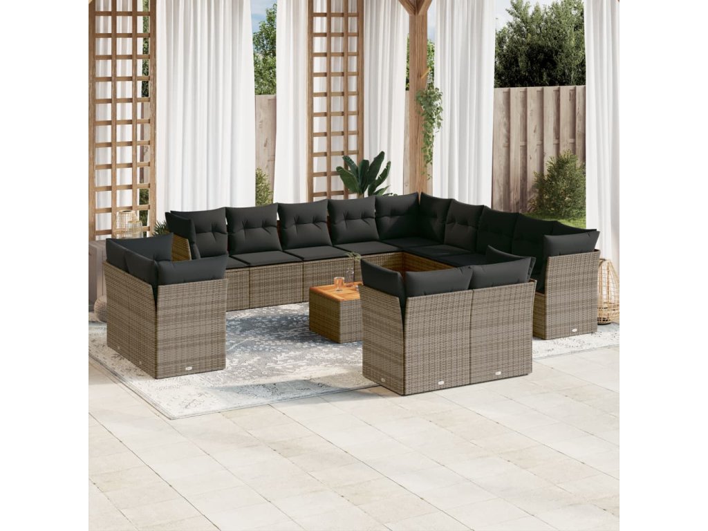14dílná zahradní sedací souprava s poduškami šedá polyratan 3256291