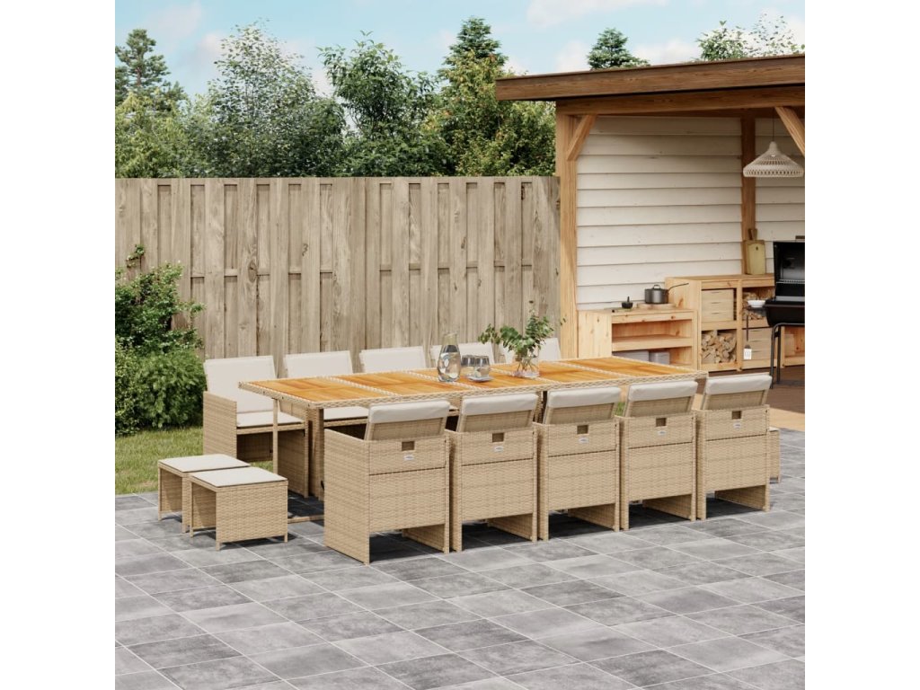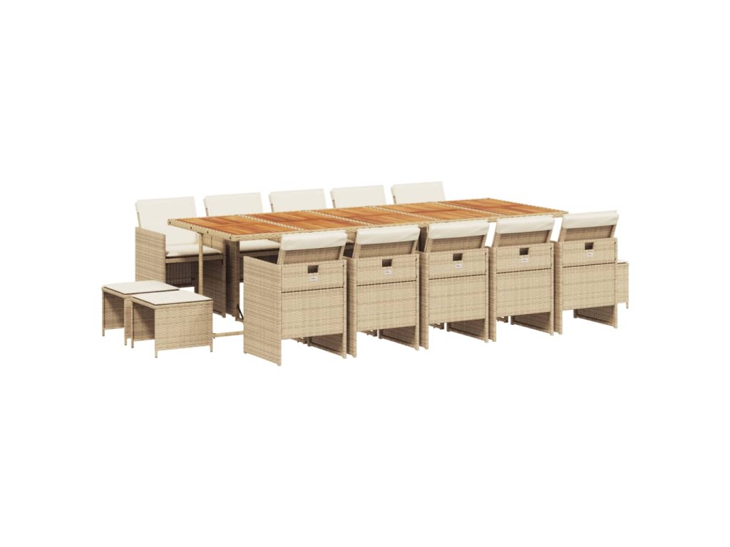 15dílný zahradní jídelní set s poduškami béžový polyratan 3277767
