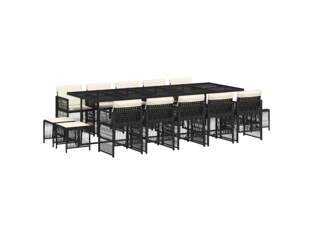 15dílný zahradní jídelní set s poduškami černý polyratan 3210990