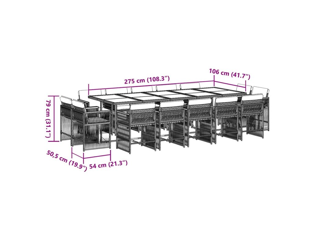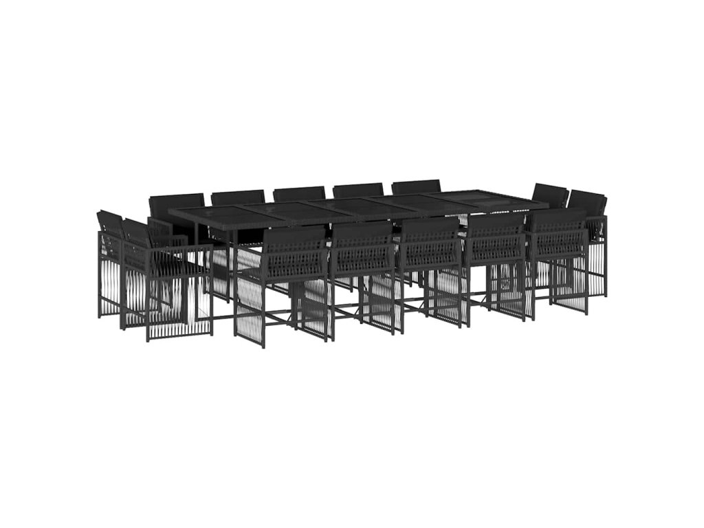 15dílný zahradní jídelní set s poduškami černý polyratan 3211771