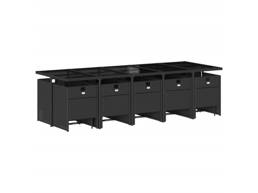 15dílný zahradní jídelní set s poduškami černý polyratan 3277757
