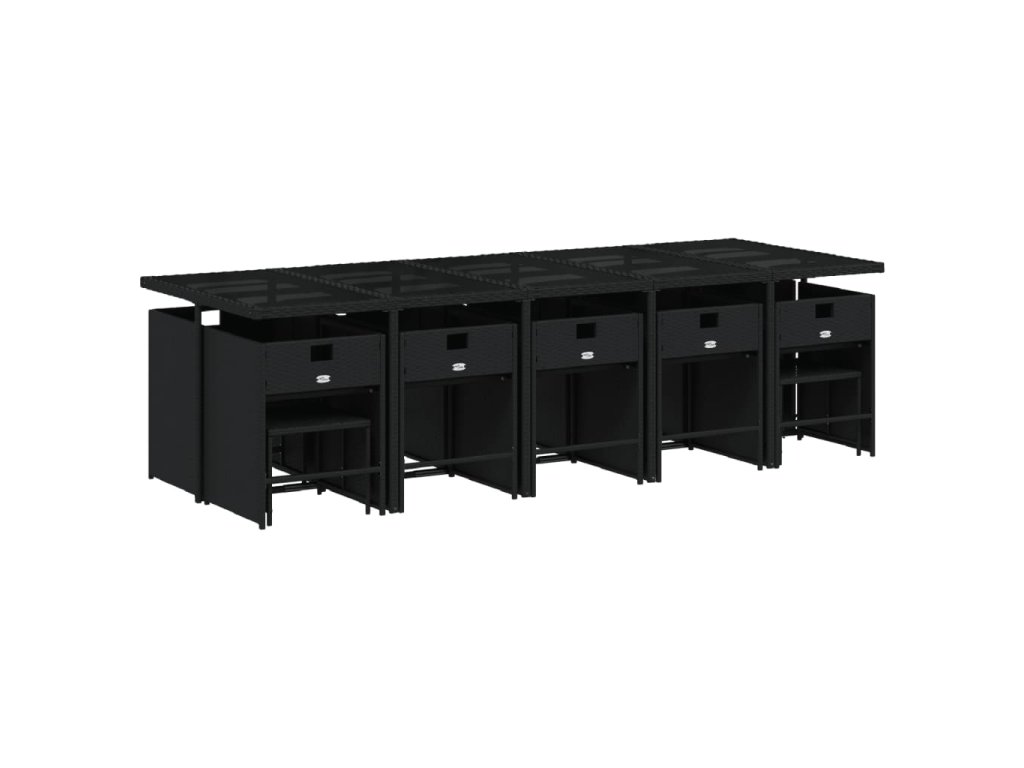15dílný zahradní jídelní set s poduškami černý polyratan 3277937