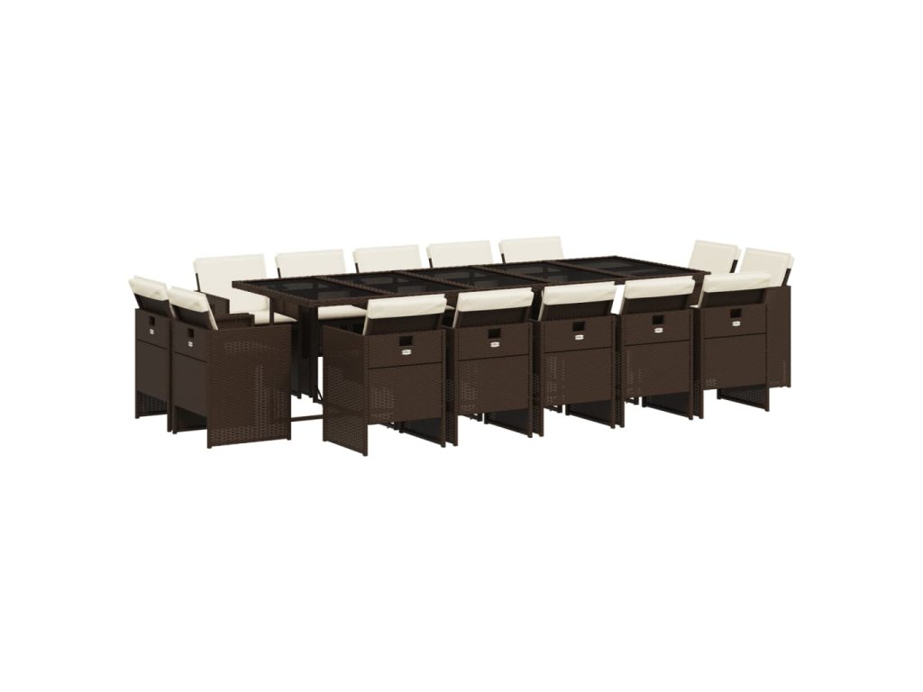 15dílný zahradní jídelní set s poduškami hnědý polyratan 3210693