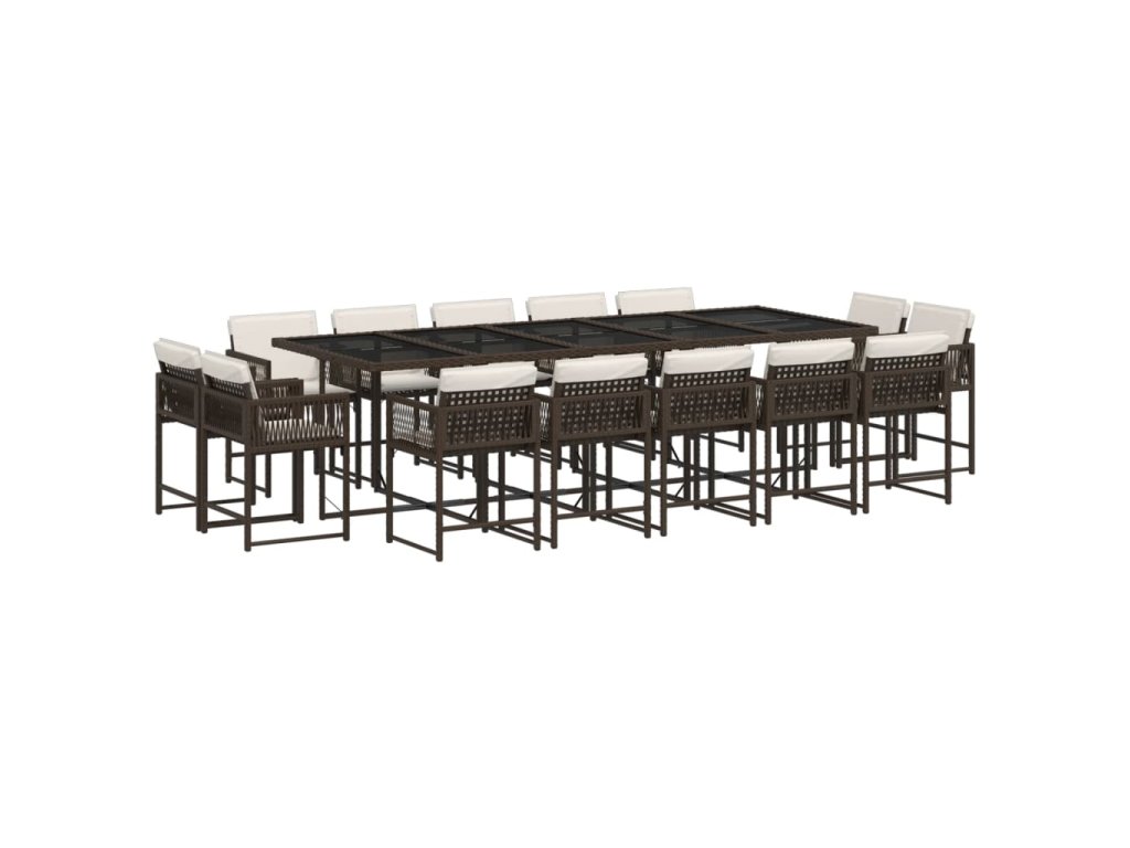 15dílný zahradní jídelní set s poduškami hnědý polyratan 3211593