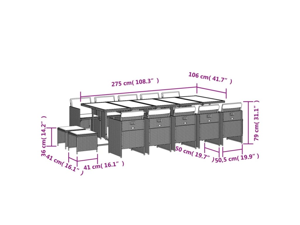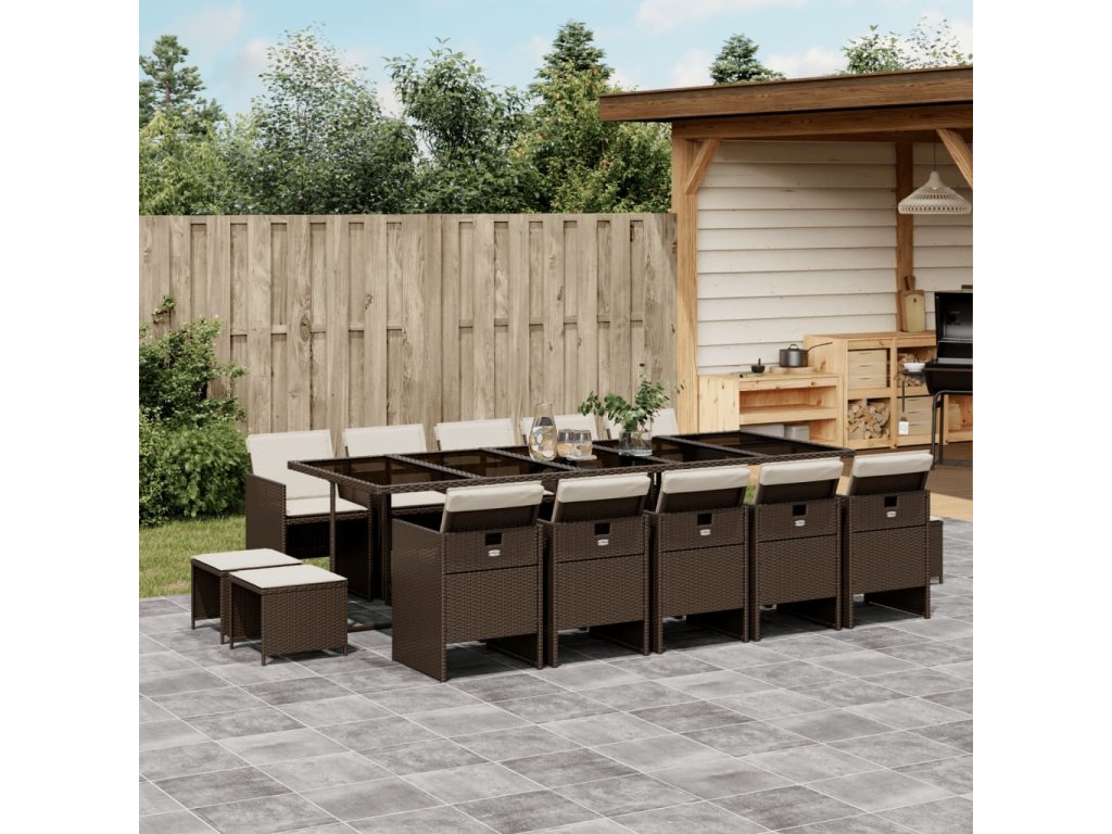 15dílný zahradní jídelní set s poduškami hnědý polyratan 3277760