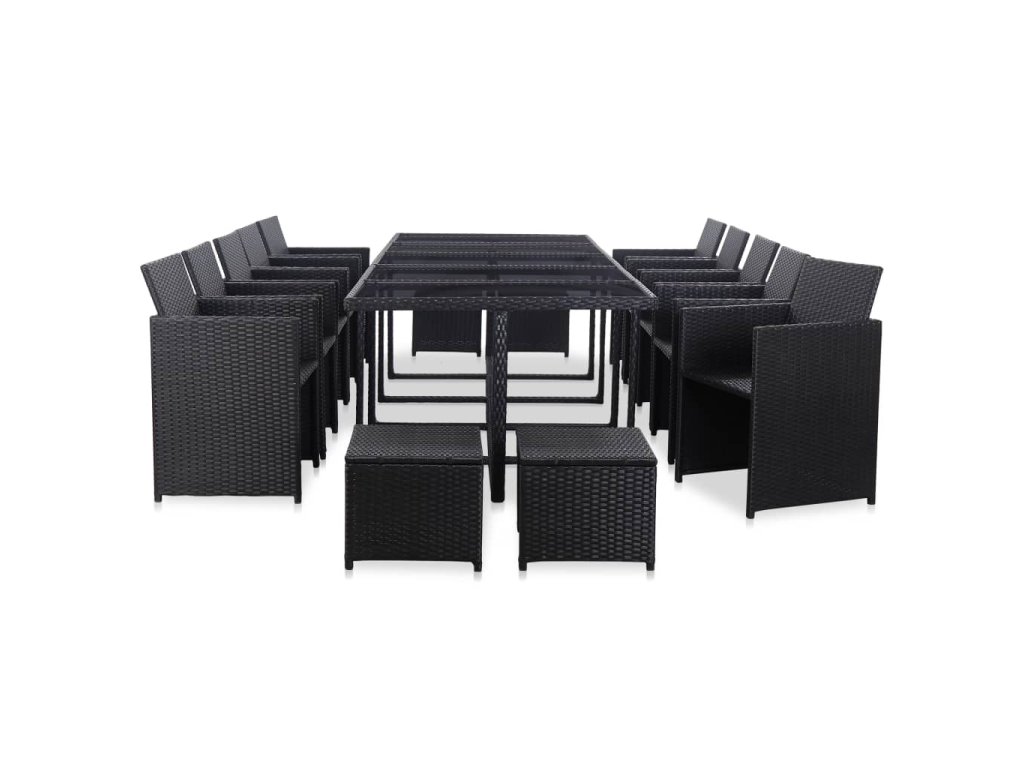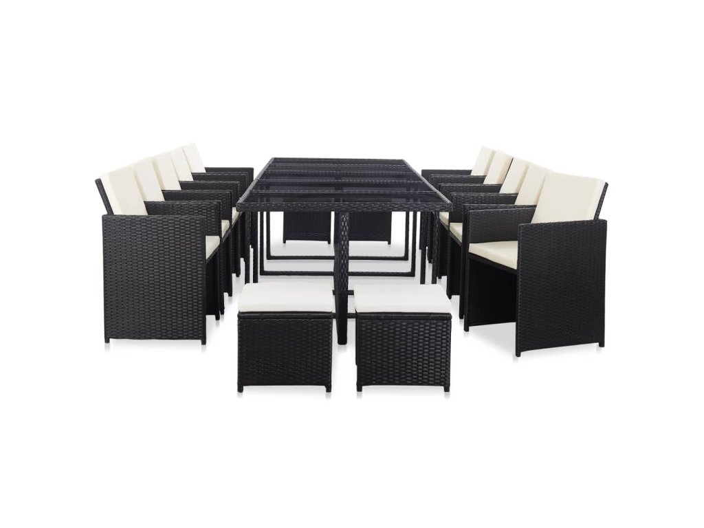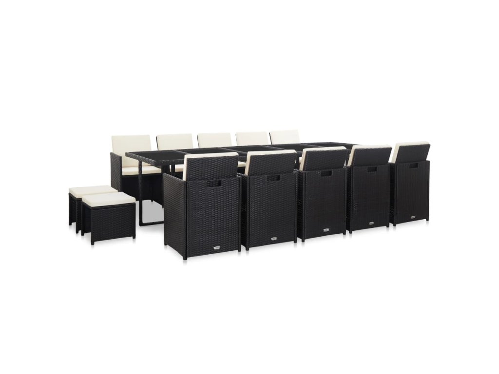15dílný zahradní jídelní set s poduškami polyratan černý 46420