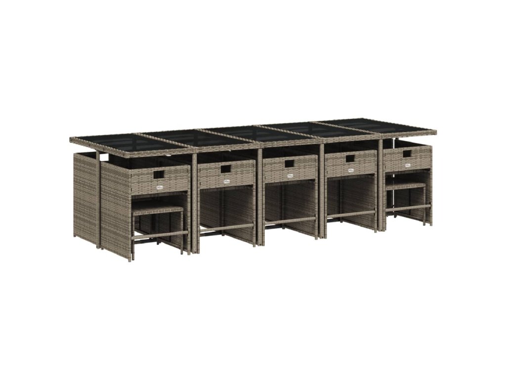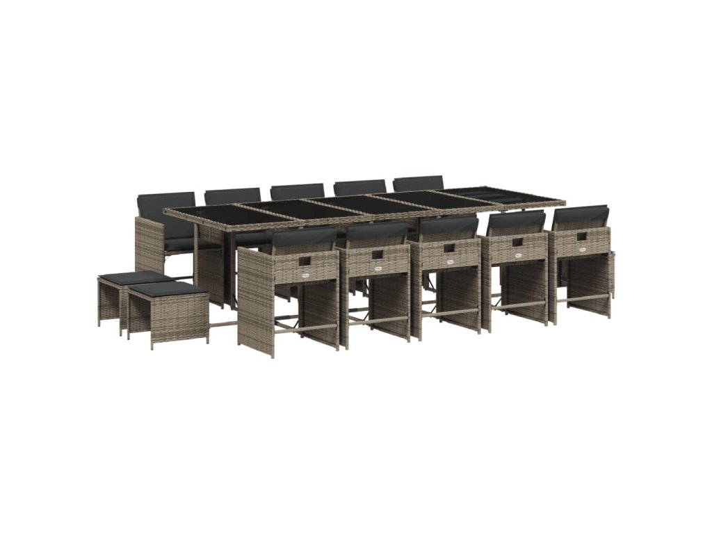 15dílný zahradní jídelní set s poduškami šedý polyratan 3211172
