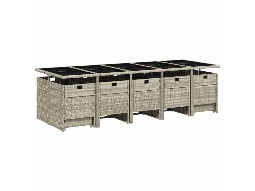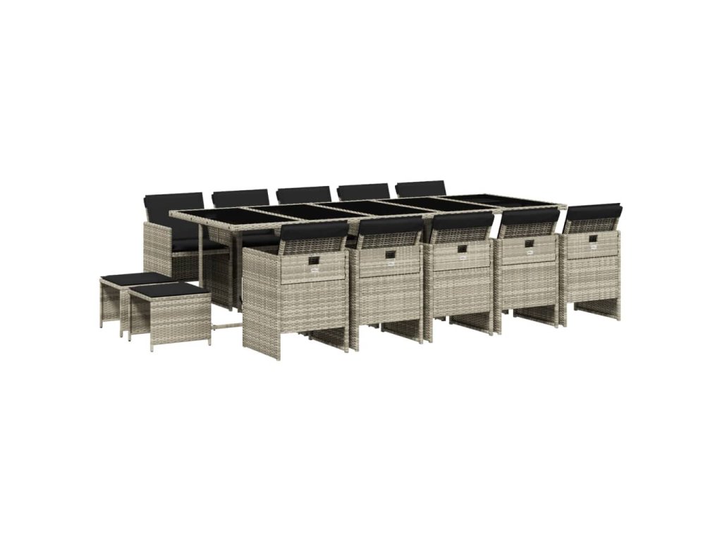 15dílný zahradní jídelní set s poduškami světle šedý polyratan 3210635
