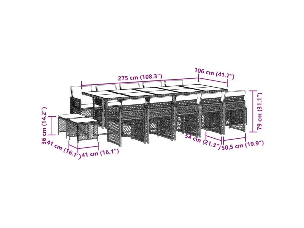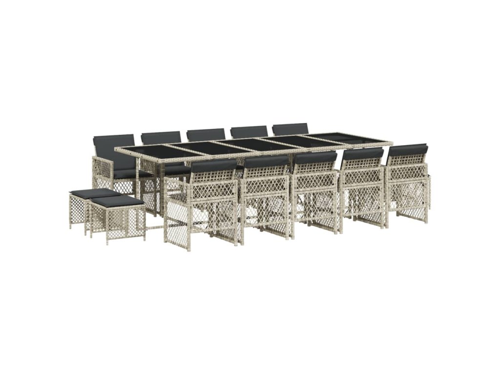 15dílný zahradní jídelní set s poduškami světle šedý polyratan 3210815