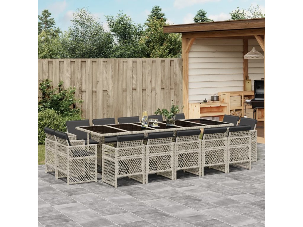 15dílný zahradní jídelní set s poduškami světle šedý polyratan 3210875