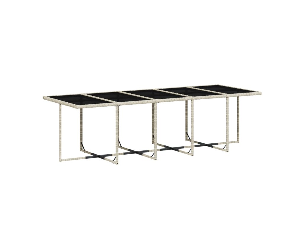 - Skleněná deska stolu: Deska venkovního stolu je zhotovena ze silného a odolného tvrzeného skla, takže ji snadno očistíte vlhkým hadříkem a zároveň do vašeho venkovního prostoru vnese nádech elegance.
