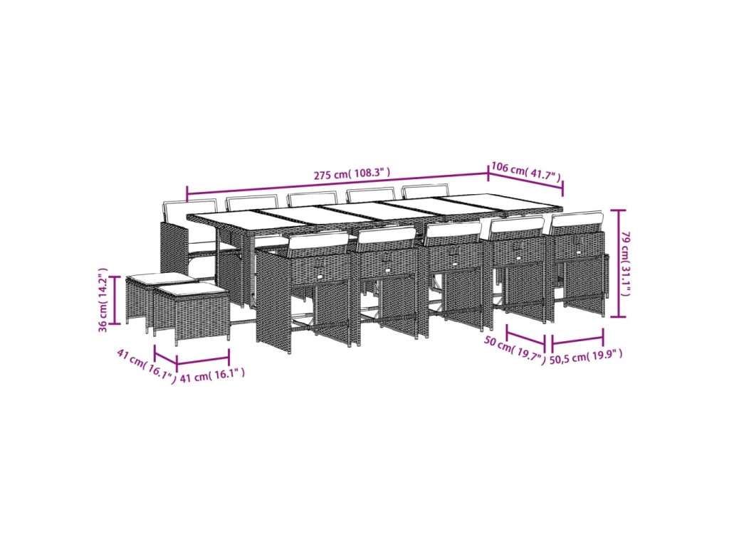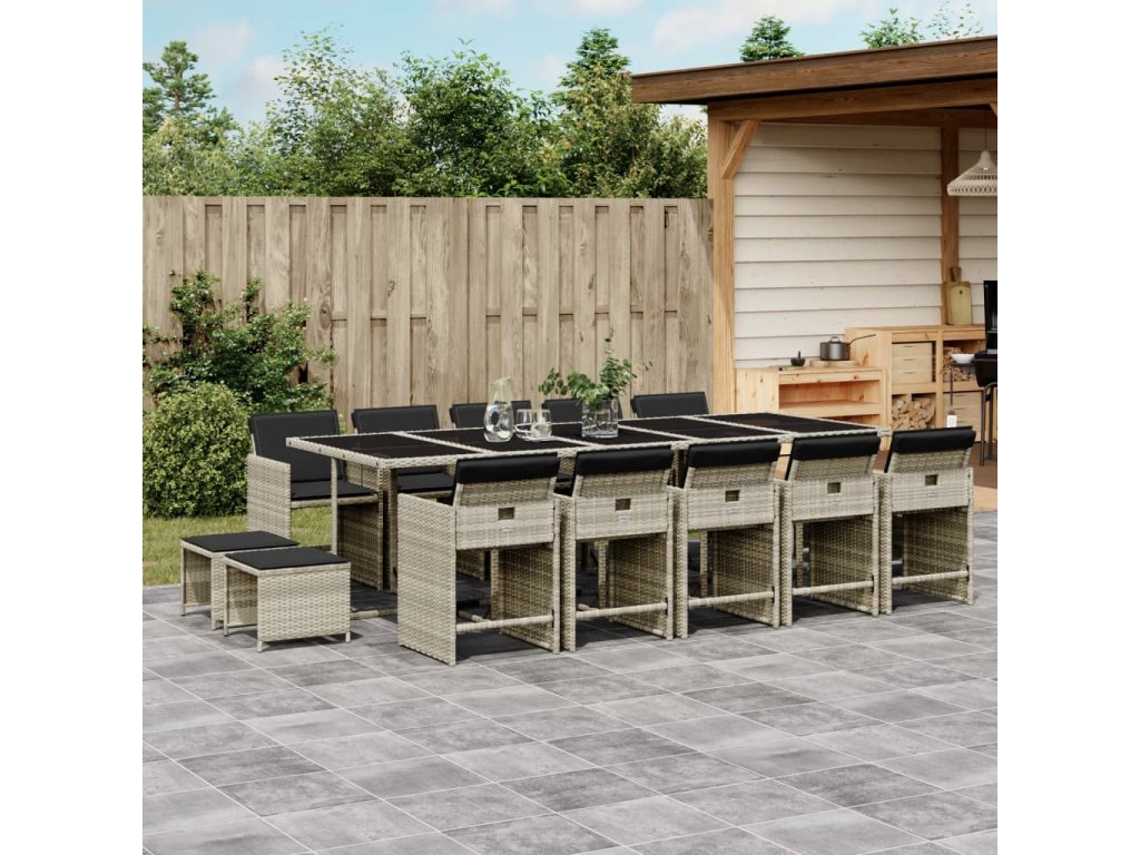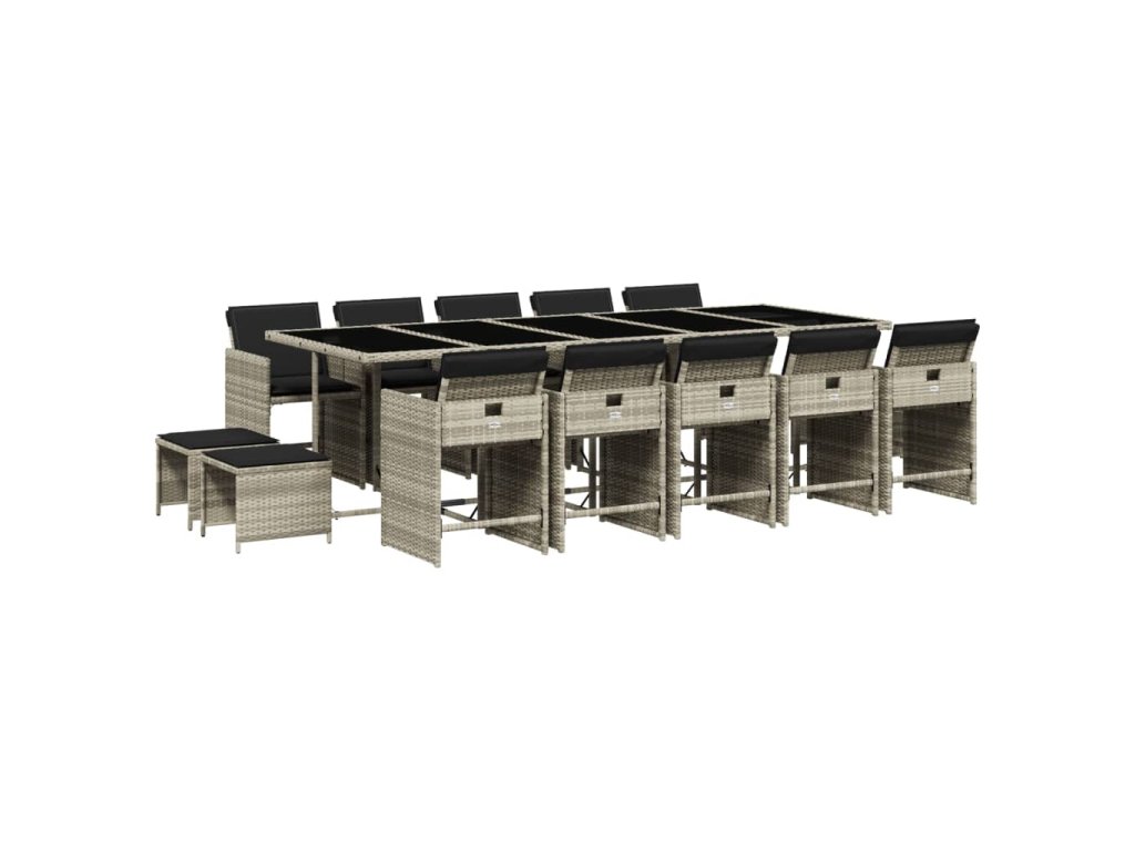 15dílný zahradní jídelní set s poduškami světle šedý polyratan 3277942
