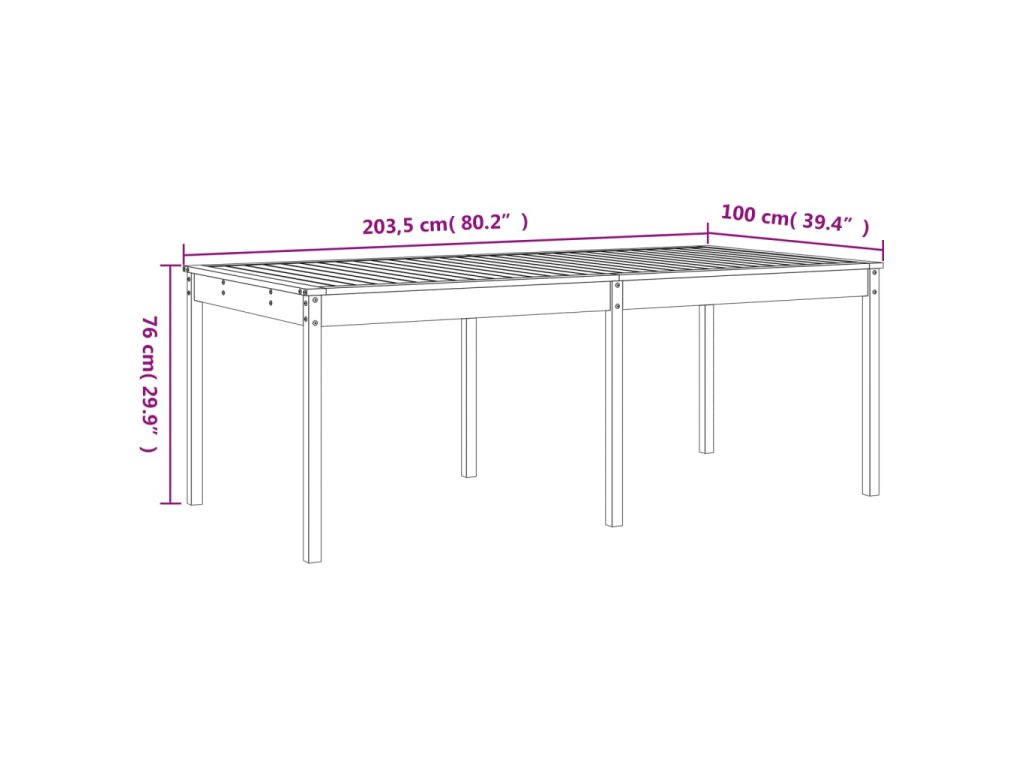 - Rozměry zahradního stolku: 203,5 x 100 x 76 cm (D x Š x V)