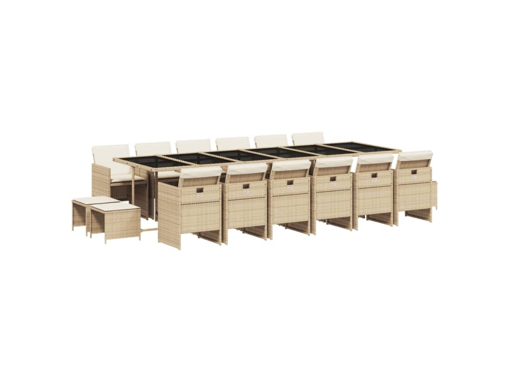 17dílný zahradní jídelní set s poduškami béžový polyratan 3210646