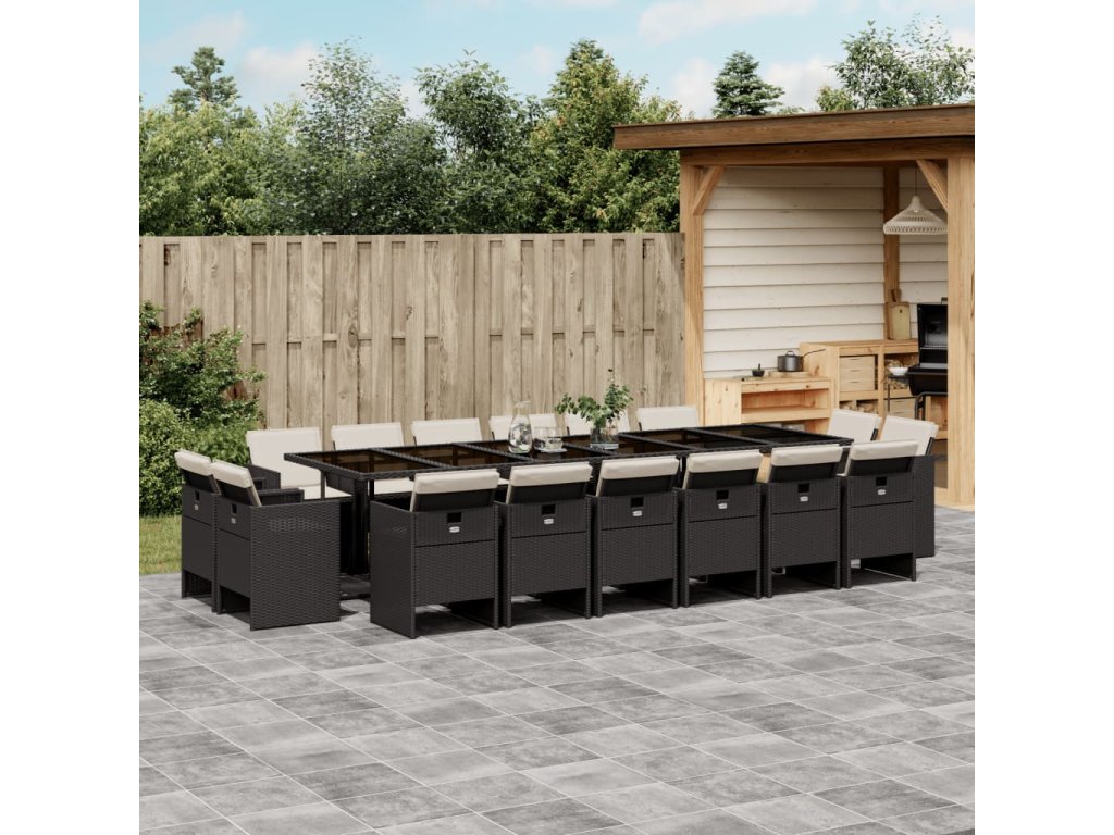 17dílný zahradní jídelní set s poduškami černý polyratan 3210702