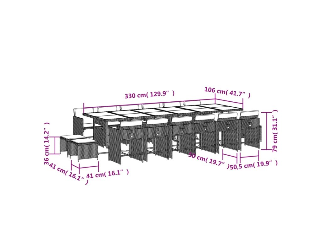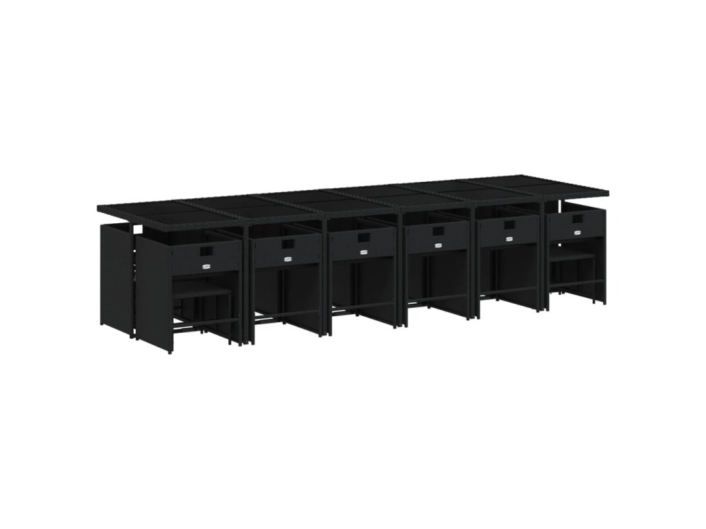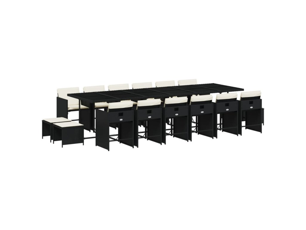 17dílný zahradní jídelní set s poduškami černý polyratan 3211182