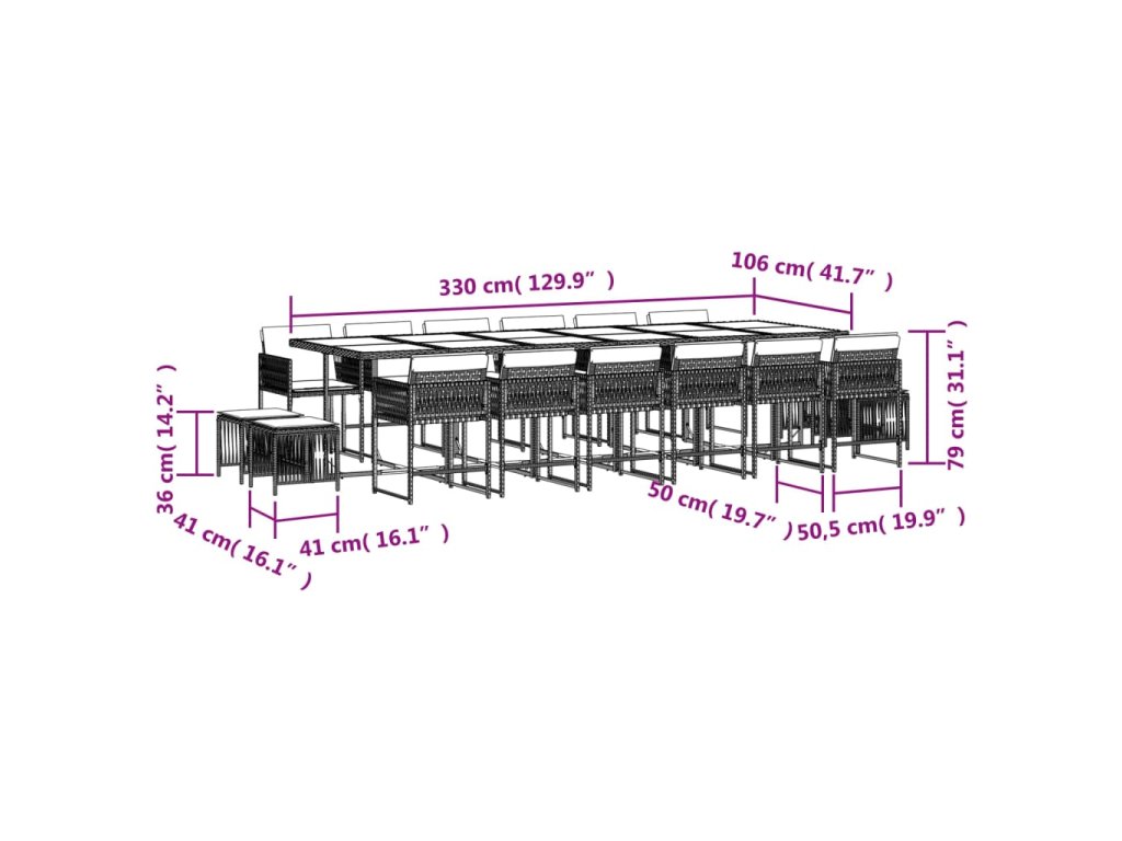 17dílný zahradní jídelní set s poduškami černý polyratan 3211542