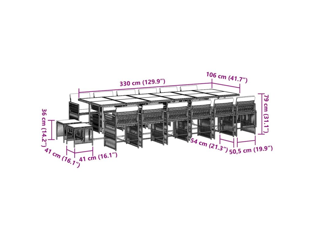 17dílný zahradní jídelní set s poduškami černý polyratan 3211722